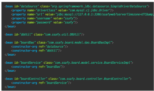 - id : 주입 받을 곳에서 호출 할 이름 설정 (유일 값)