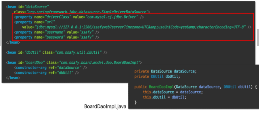 - property를 통해 객체 또는 값을 주입 받는다. - setter method