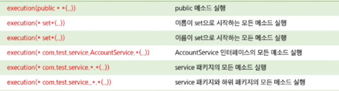 - Pointcut : '공통 기능을 적용할 대상'을 의미(1개 또는 그 이상)
